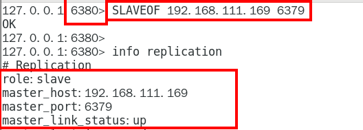 nps2-r:db0> info replication # Replication role:master connected_slaves:2 slave0:ip=127.0.0.1,port=6380,state=online,offset=714,lag=0 slave1:ip=127.0.0.1,port=6381,state=online,offset=714,lag=1 master_failover_state:no-failover master_replid:3a8b4fa7e426f528c3121da5dfbf57ef0a7da109 master_replid2:0000000000000000000000000000000000000000 master_repl_offset:714 second_repl_offset:-1 repl_backlog_active:1 repl_backlog_size:1048576 repl_backlog_first_byte_offset:1 repl_backlog_histlen:7141