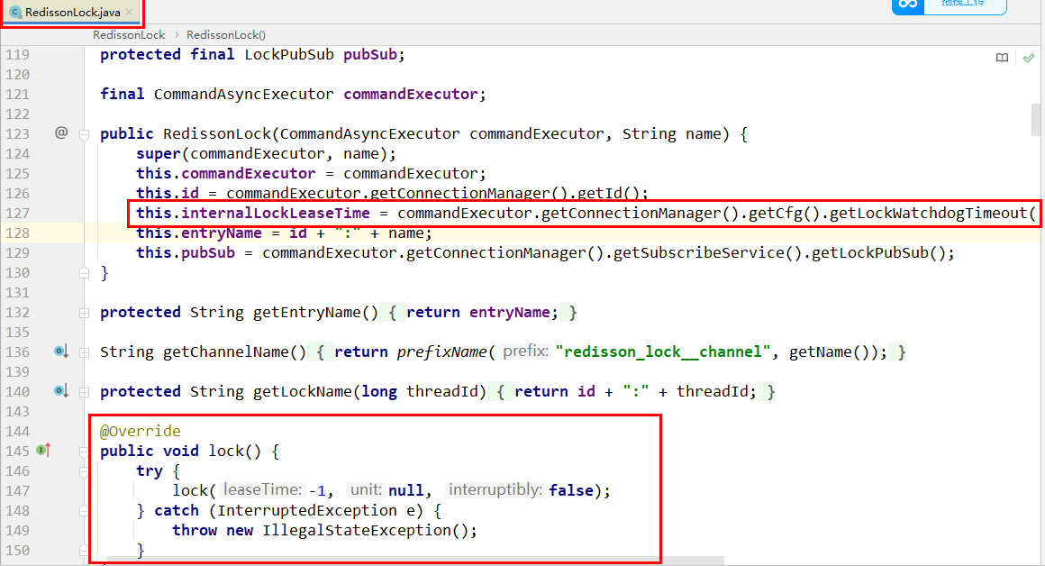 /** * V9.0 Redisson * * @return */ public String saleByRedisson() { String retMessage = ""; String key = "zzyyRedisLock"; RLock redissonLock = redisson.getLock(key); redissonLock.lock(); try { //1 查询库存信息 String result = stringRedisTemplate.opsForValue().get("inventory001"); //2 判断库存是否足够 Integer inventoryNumber = result == null ? 0 : Integer.parseInt(result); //3 扣减库存 if (inventoryNumber > 0) { stringRedisTemplate.opsForValue().set("inventory001", String.valueOf(--inventoryNumber)); retMessage = "成功卖出一个商品,库存剩余: " + inventoryNumber; System.out.println(retMessage); } else { retMessage = "商品卖完了,o(╥﹏╥)o"; } } finally { redissonLock.unlock(); } return retMessage + "\t" + "服务端口号:" + port; }1
