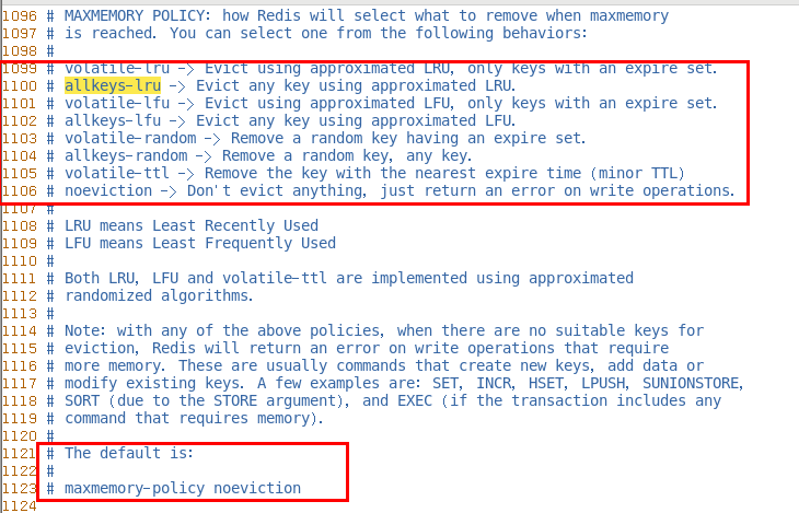 - allkeys-lfu: 对所有key使用LFU算法进行删除