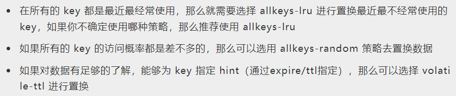 - noeviction: 不会驱逐任何key,表示即使内存达到上限也不进行置换,所有能引起内存增加的命令都会返回error