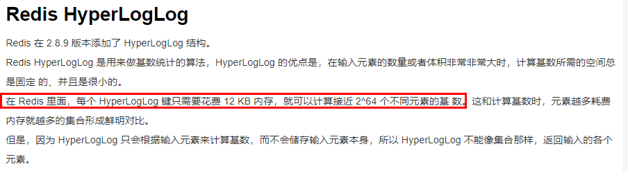 - 只是进行不重复的基数统计,不是集合也不保存数据,只记录数量而不是具体内容。