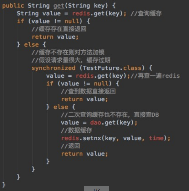 后面的线程进来发现已经有缓存了,就直接走缓存。