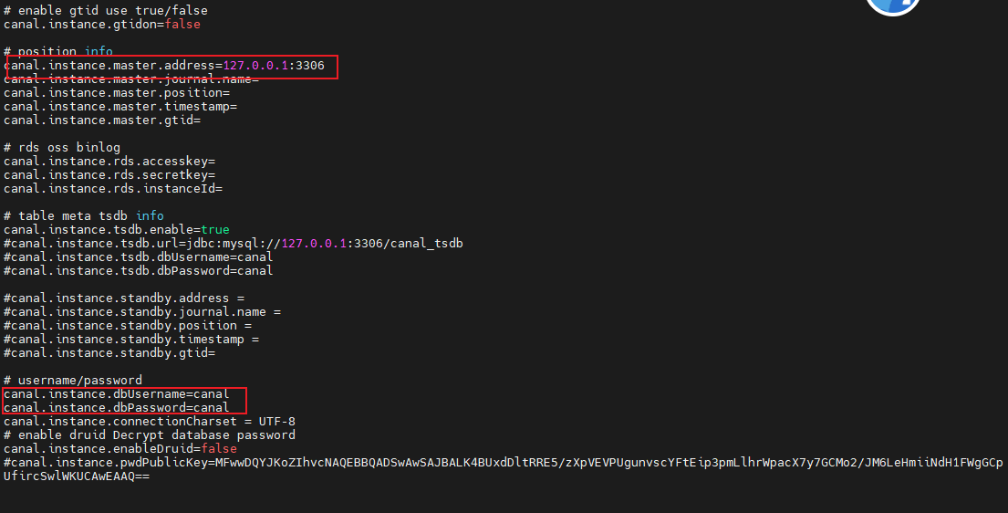 CREATE USER 'canal'@'%' IDENTIFIED BY 'canal'; // 创建 ALTER USER 'canal'@'%' IDENTIFIED BY 'canal'; // 更新 GRANT ALL PRIVILEGES ON *.* TO 'canal'@'%'; FLUSH PRIVILEGES;1